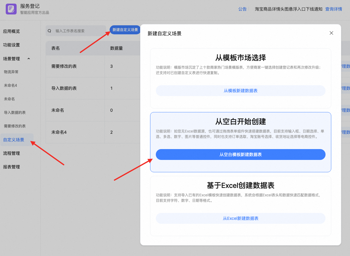 第一个触发节点,选择 应用:服务登记 ; 触发动作: 当工作表新增记录时; 然后选择 新创建的这张用于导入数据的数据工作表A。